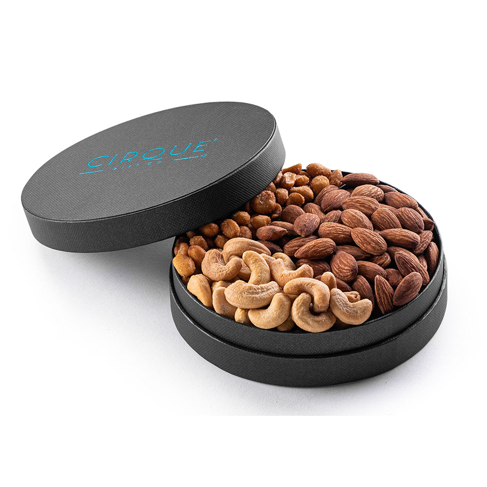 6″ Gourmet Nut Gift Tray. Includes Honey Roasted Peanuts, Almonds and Cashews.